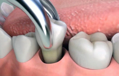 Таким образом, ретинированные и дистопированные зубы, как правило, подлежат удалению, даже если на данный момент отсутствуют связанные с ними жалобы. После удаления лунка заполняется костеобразующим материалом для предотвращения обнажения корня второго моляра и снижения дискомфорта в послеоперационном периоде. Самым простым считается удаление подвижных зубов при пародонтите. Тем не менее, зачастую такое простое удаление требует ряда дополнительных мероприятий: сглаживания возникших в результате резорбции (рассасывания) костных выступов, тщательное удаление патологических мягких тканей при наличии пародонтальной кисты и почти всегда введение остеокондуктивных материалов. Пренебрежение этими нюансами влечет за собой возникновение осложнений и деформаций. Сразу после удаления возможна фиксация иммедиат-протеза, специальной временной ортопедической конструкции, изготовленной заблаговременно.